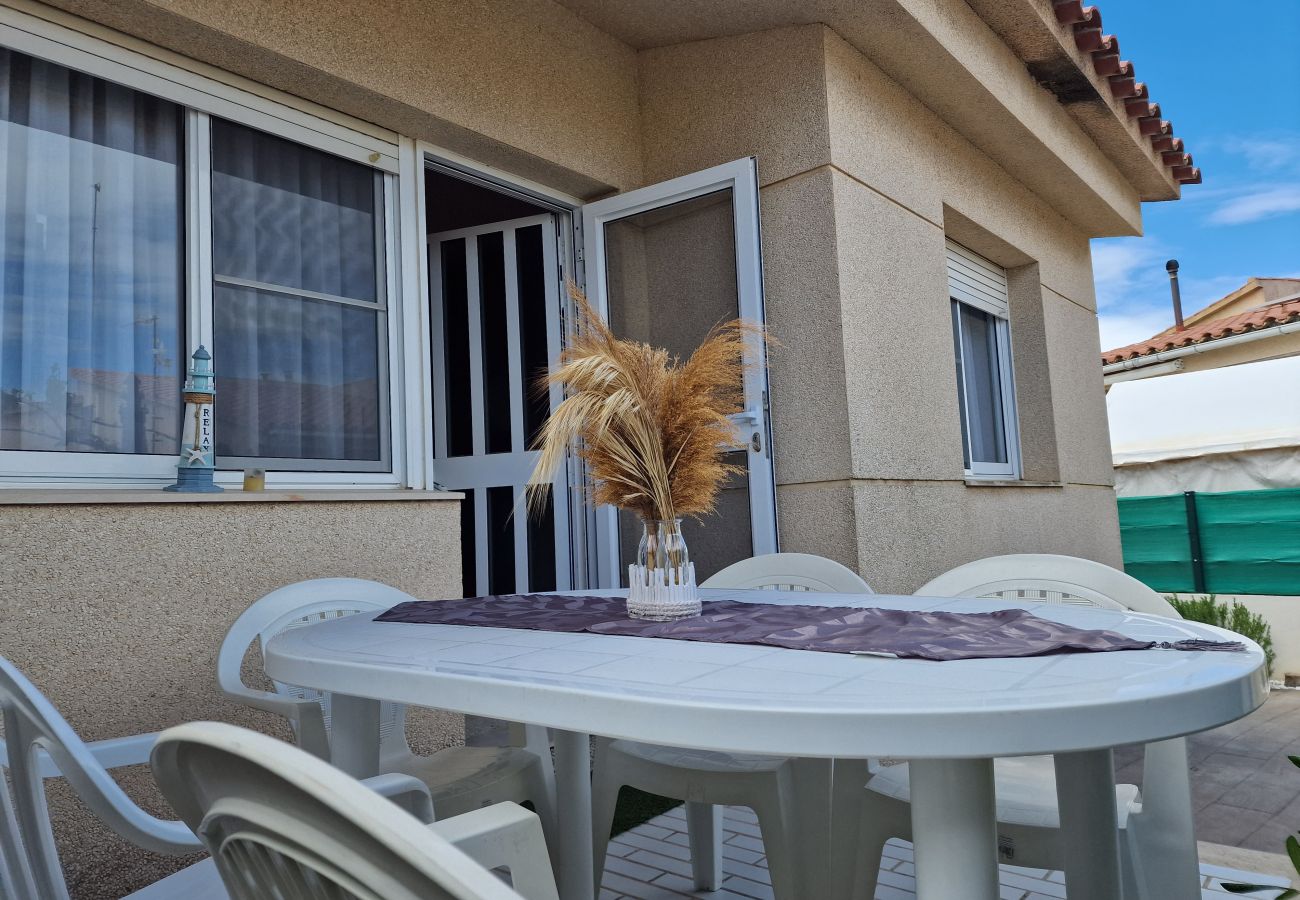 La casa en Riumar posee 3 dormitorio(s) y capacidad para 6 personas. Alojamiento de 70 m² confortable y muy luminoso, con vistas al jardín y a la piscina. Se encuentra a 350 m del restaurante "Plan B, Paca, Pizzaria", 400 m de la playa de arena "Platja de Riumar", 550 m del supermercado "Spar", 10 km del hospital "Ärztehaus Deltebre", 10 km de la ciudad "Deltebre", 11 km del hospital "Tierarzt", 25 km de la estación de tren "L'Aldea & L'Ampolla", 167 km del aeropuerto "Barcelona" y está ubicado en una zona ideal para familias y junto al mar.Dispone de jardín, mobiliario jardín, parcela vallada, 9 m² de terraza, lavadora, barbacoa, acceso internet (wifi), aire acondicionado, piscina privada, parking aire libre en edificio cercano, mosquiteras en todo el alojamiento, 1 Televisor, tv satelite.La cocina americana, de mixta: gas y eléctrica, está equipada con nevera, microondas, horno, congelador, lavavajillas, vajilla/cubertería, utensilios/cocina, cafetera, tostadora y batería de cocina.2 comentarios