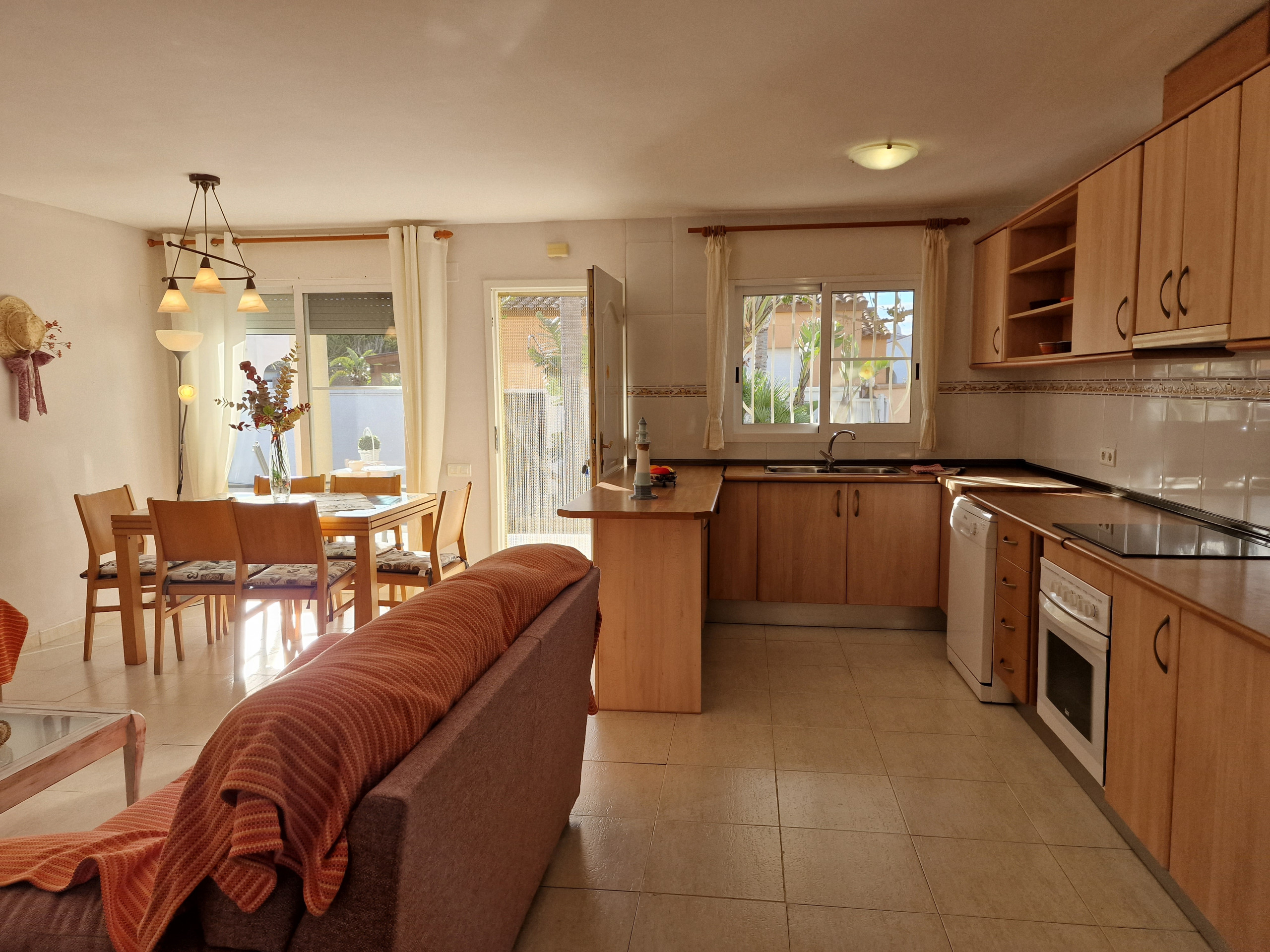 La cuisine américaine, à vitrocéramique, est équipée avec réfrigérateur, micro-ondes, four, congélateur et lave-vaisselle.